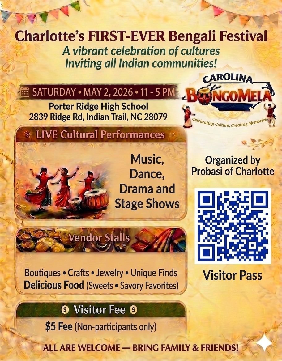 🎉✨ Carolina Bongomela – Charlotte’s First-Ever Bengali Festival! ✨🎉