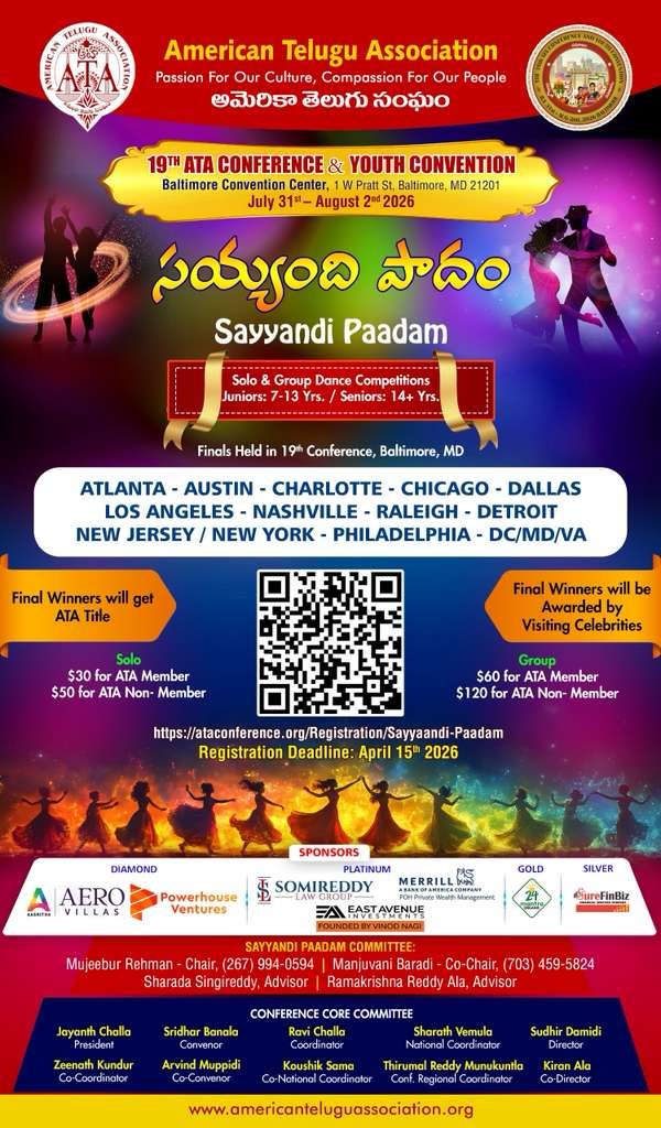 The American Telugu Association (ATA) proudly presents Sayyandi Paadam – the most thrilling solo & group dance competition of 2026! 🎶✨