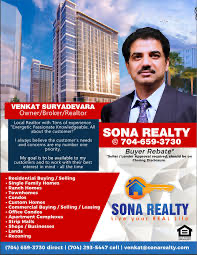 Venkat Suryadevara is a local real estate agent in the Charlotte area with a lot of experience. He helps clients buy and sell many types of properties, such as single-family homes, ranch homes, townhomes, condos, custom homes, and commercial properties. This includes office condos, apartment buildings, strip malls, shops, businesses, and also land and rezoning.